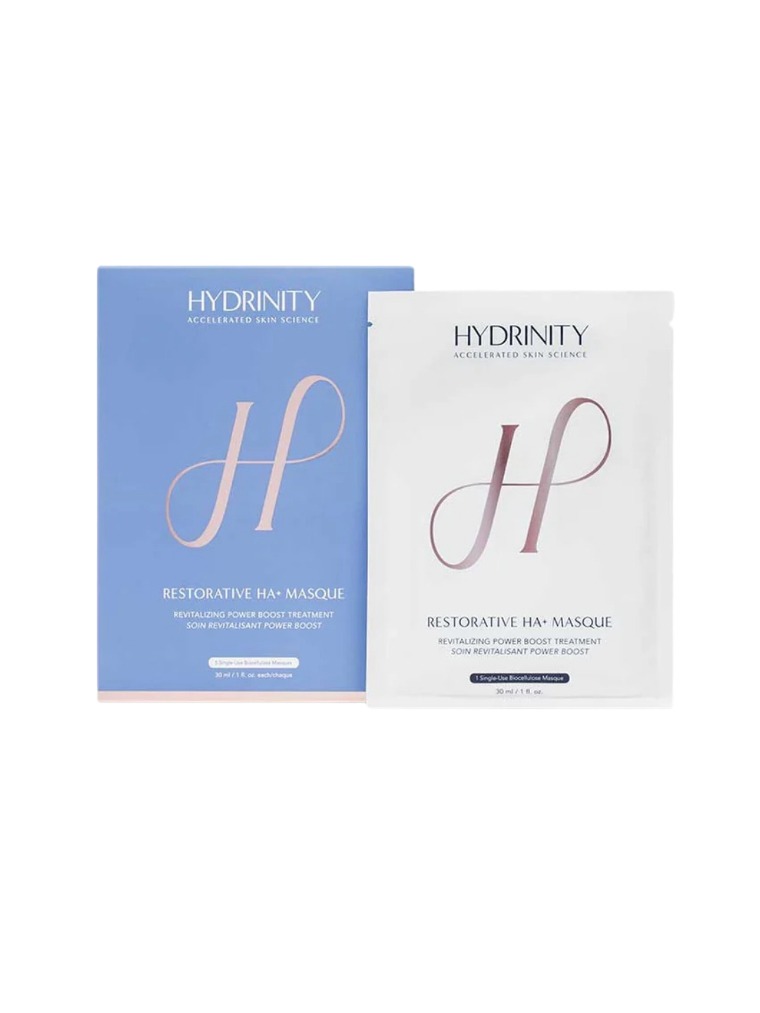 The logo features a large white stylized 'H' and the words 'HYDRINITY' and 'ACCELERATED SKIN SCIENCE' in white against a black background.